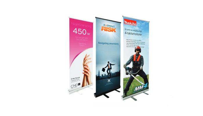 Custom stickers, flex banners, roll-up stands, and pop-up displays for events.